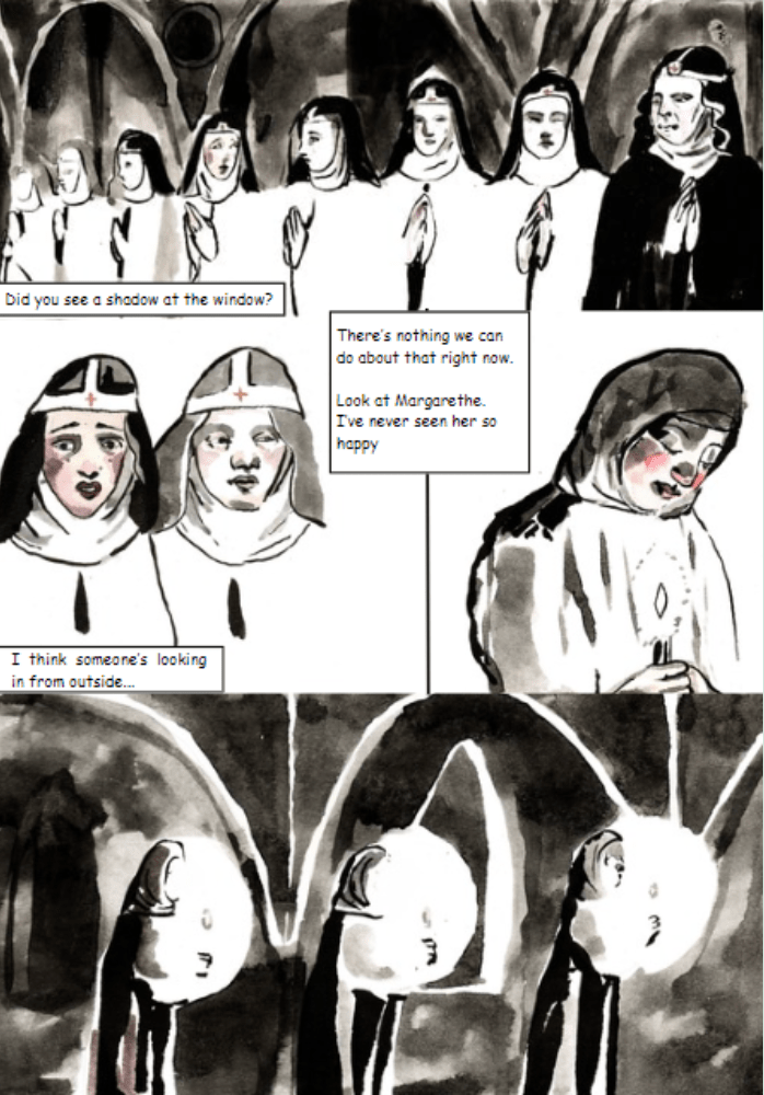 Meet Margarete, the protagonist of our graphic novel “Breaking Walls.” In 1522, she entered the Cistercian convent of Wienhausen, where she would spend her life amid one of the most turbulent chapters of the convent’s history.