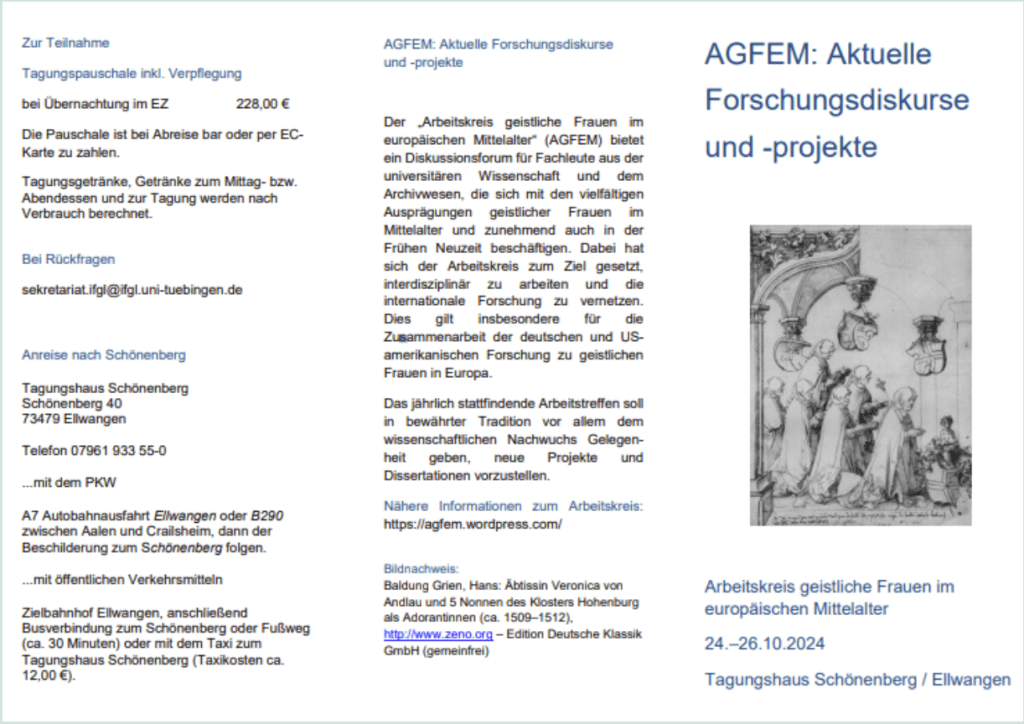 Last October, we had the privilege of attending the annual meeting of the Arbeitskreis geistliche Frauen im Europäischen Mittelalter (AGFEM), an interdisciplinary working group dedicated to the study of spiritual women in the European Middle Ages. As always, the meeting served as an inspiring platform for engaging with new trends and current research in this vibrant field.